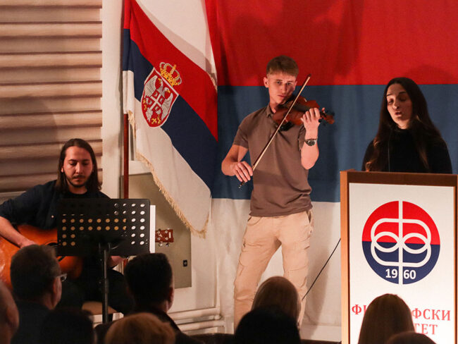 „Жилишта душа“, поетско вече посвећено родољубивој поезији, одржано је 8. априла 2026. године, у амфитеатру Филозофског факултета. Наставници Филозофског факултета су, заједно са својим студентима, на седам језика, уз пратњу гитаре и виолине, казивали стихове Милана Ракића, Даринке Јеврић, Џорџа Гордона Бајрона, Константина Кавафиса, Волта Витмана и других. После поздравног говора проф. др Александре Костић…